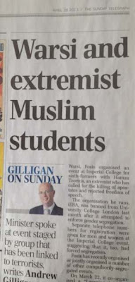 Now, at least some people in the main stream media are looking closely at her activities with a critical eye. Today's Telegraph has an article by Andrew Gilligan exposing the fact that she spoke at a meeting hosted by the terrorist supporting FOSIS (Federation of Student Islamic Societies).